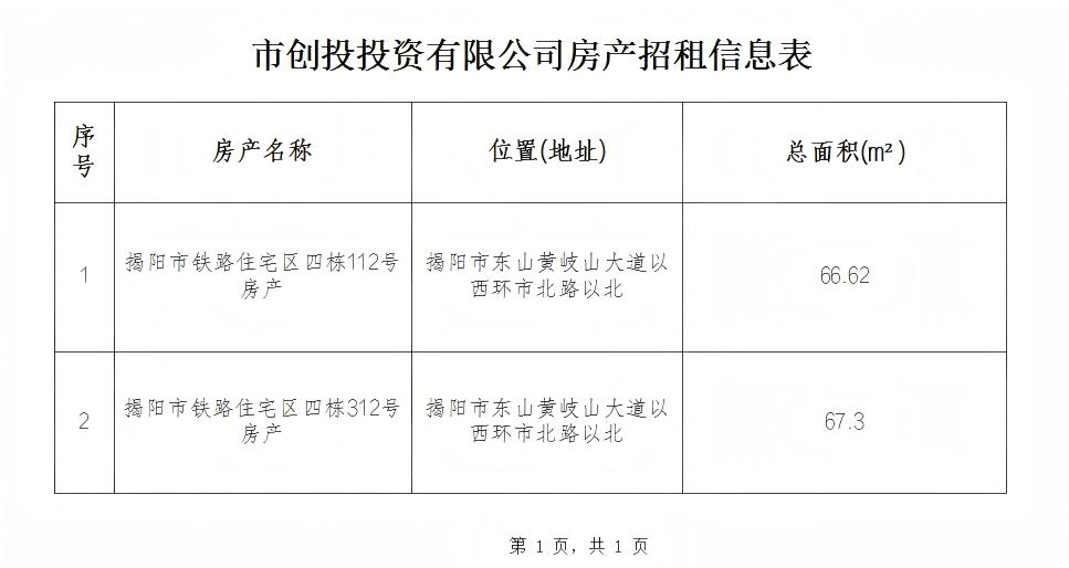 一、目前招租的資產(chǎn)概況如下: