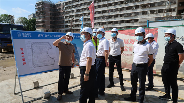 2022年9月26日,市政府副市長(zhǎng)羅毅一行到揭陽(yáng)“金葉匯”商業(yè)綜合體項(xiàng)目工地視察,在現(xiàn)場(chǎng)聽(tīng)取市金葉公司黨支部書記、董事長(zhǎng)、總經(jīng)理卓少琳關(guān)于“金葉匯”建設(shè)情況的匯報(bào),詳細(xì)詢問(wèn)項(xiàng)目施工進(jìn)度、施工質(zhì)量、安全生產(chǎn)工作情況,要求進(jìn)一步創(chuàng)新工作舉措,落實(shí)安全生產(chǎn)、文明施工,嚴(yán)把工程質(zhì)量關(guān),在保證質(zhì)量的前提下加快工程進(jìn)度,確保早日完成項(xiàng)目建設(shè)。
